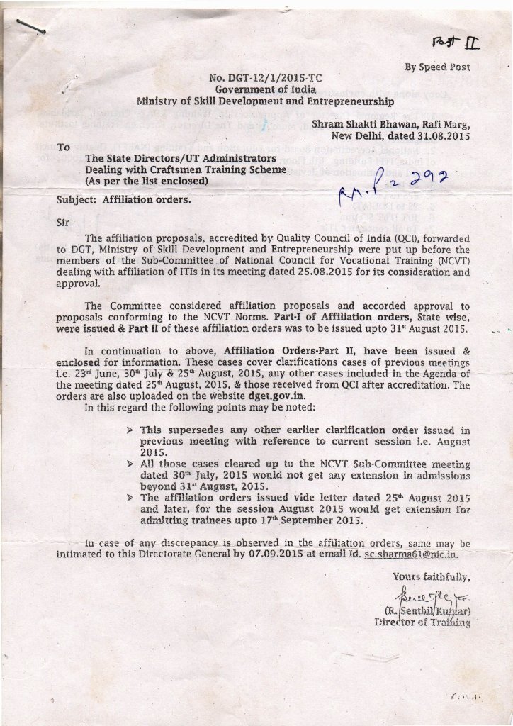 | DGET File Reference No. | DGET-6/12/327/2015-TC |